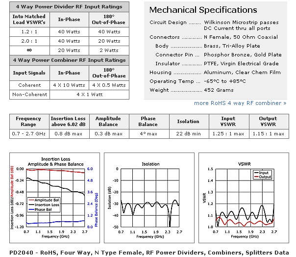 Four Way, 50 Ohm, Type-N & SMA, RF Microwave Power Dividers, Combiners, Splitters
